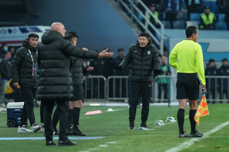 新华社照片,大连(辽宁),2026年3月20日\n 3月20日,大连英博队主教练李国旭(右二)在比赛中。\n 3月20日,在辽宁大连举行的2026赛季中国足球协会超级联赛第三轮比赛中,大连英博队主场1比0战胜上海海港队。\n 新华社记者 潘昱龙 摄